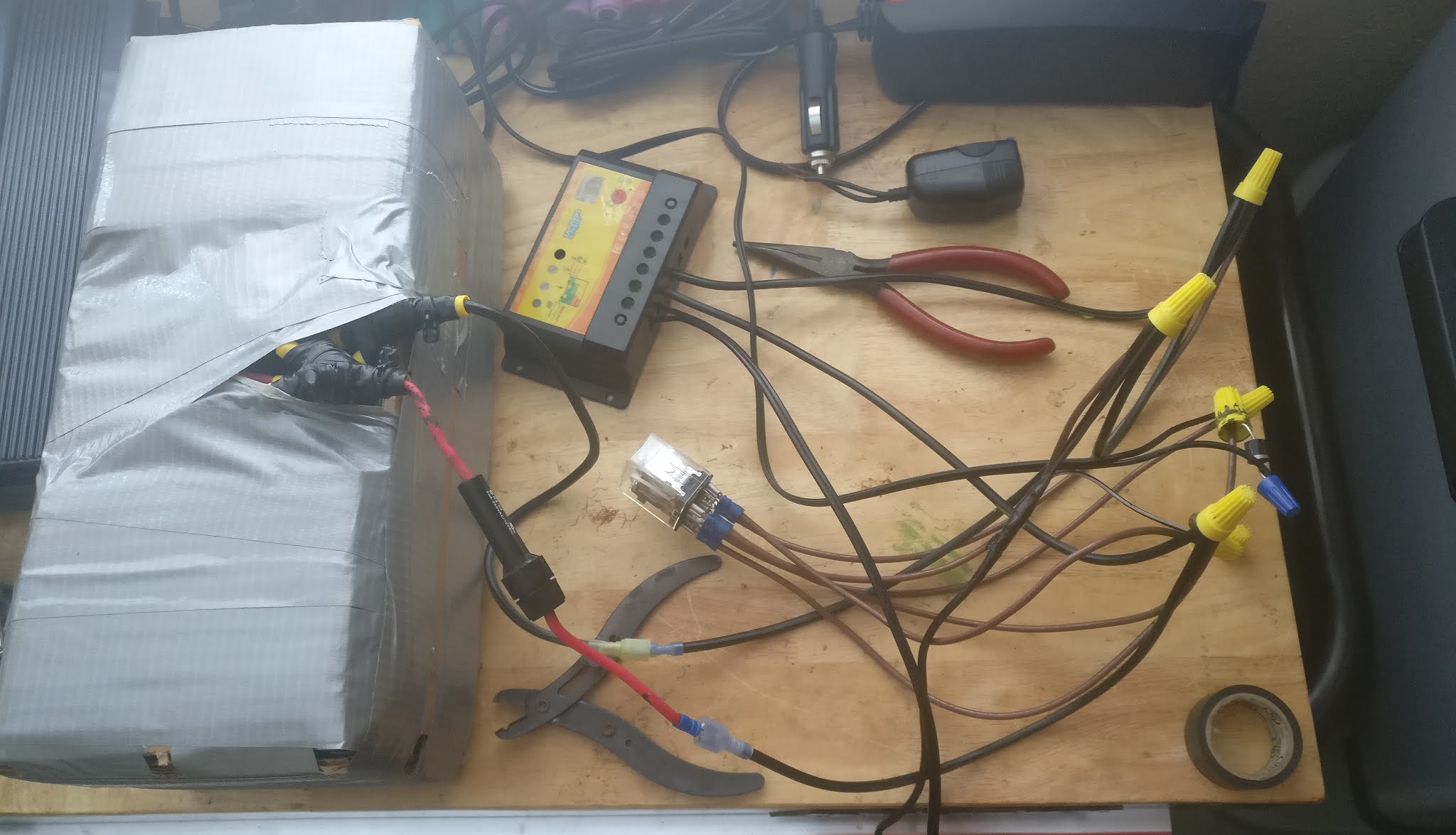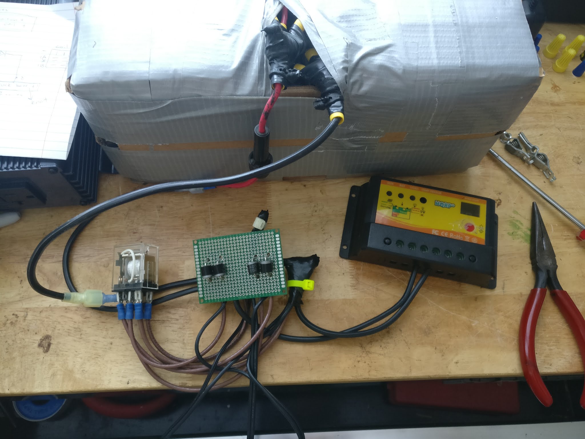 This led to the idea that I could use a relay to switch between the solar panel and the alternator to charge the auxiliary battery, with the charge controller doing its thing in between.