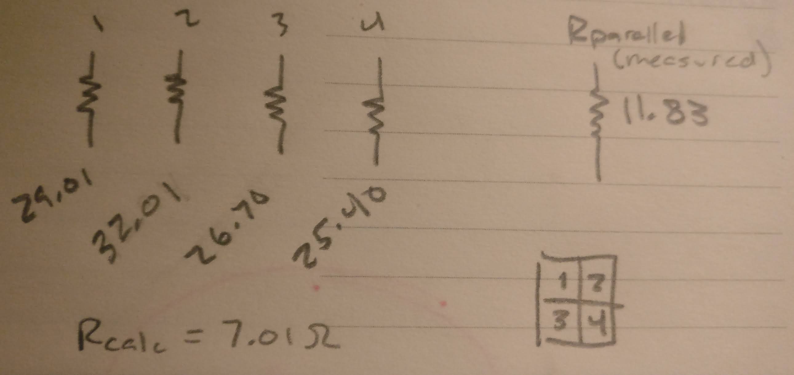 One test I also did was a measurement of the batteries’ internal resistance. For that I have a special meter which measured from 25 to 32 milliohms for each of the four batteries. In parallel I measured 11 milliohms for the whole pack, which is pretty close to a calculated value of around 8 milliohms. This is also good for peace-of-mind since they are so close and none of the four batteries are obviously bad like I had originally suspected.