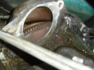 This is the view from below the engine bay. The flywheel is visible in this picture.